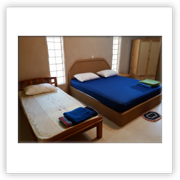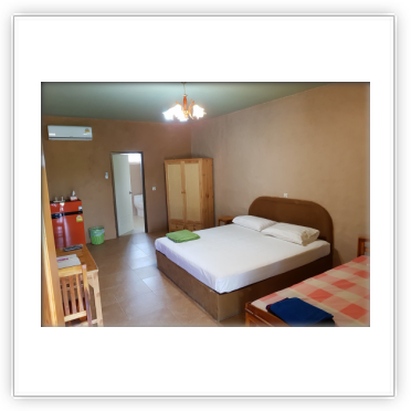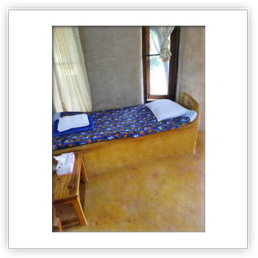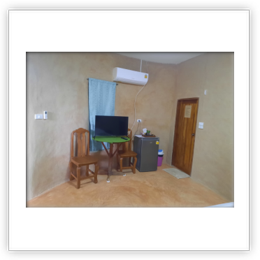 ห้องพักของเราทุกห้องก่อสร้างด้วยอิฐดินดิบที่ปั้นด้วยมือ ความหนากว่า 20 ซม.จึงหมดปัญหาเรื่องเสียงรบกวนจากภายนอก ผนังห้องฉาบด้วยดิน ให้บรรยากาศเหมือนอยู่กับธรรมชาติอย่างแท้จริง ถึงแม้การตกแต่งจะเรียบง่าย แต่ภายในห้องพักก็มีสิ่งอำนวยความสะดวกที่จำเป็นครบครัน ห้องพักกว้างขวาง มีระเบียงด้านหน้าส่วนตัว พื้นที่จอดรถของเราสะดวกและเพียงพอ มีความปลอดภัย พนักงานทุกคนอาศัยอยู่ในบริเวณใกล้เคียงและเต็มใจให้บริการ